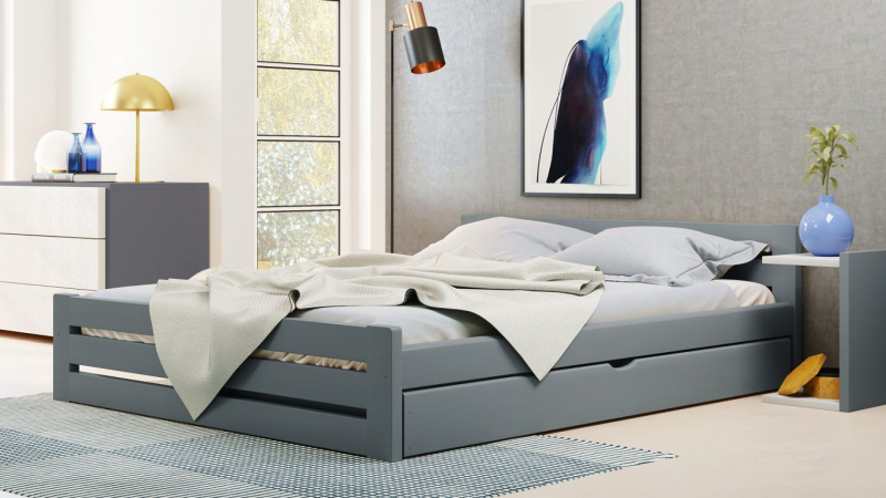 Postel Marek 180/200 cm - šedá + šuplík - masiv smrk 3,5 cm