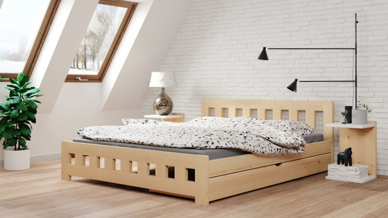 Postel Mirek 140/200 cm + šuplík - masiv smrk 3,5 cm