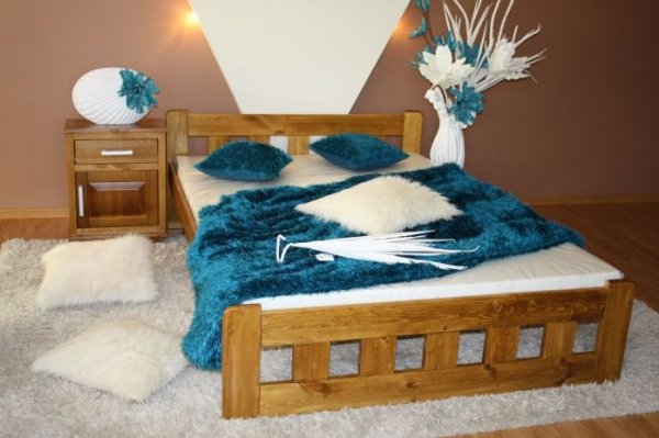 Nová postel z masivu borovice o síle 25 - 28 mm. Tato postel je proti ostatním postelím z masivu zvýšená o cca 10 cm. Je proto vhodná pro osoby s onemocněním pohybového aparátu. Výška roštu od země je cca 34 cm. Postele jsou lakovány dvakrát bezbarvým ekologicky a zdravotně nezávadným lakem. Postele v barevných provedeních olše, dub a ořech, jsou napřed mořeny ve výše zmíněných odstínech a následně dvakrát lakovány průhledným lakem. Barevná provedení naleznete zvlášť.