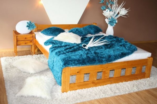 Nová postel z masivu borovice o síle 25 - 28 mm. Tato postel je proti ostatním postelím z masivu zvýšená o cca 10 cm. Je proto vhodná pro osoby s onemocněním pohybového aparátu. Výška roštu od země je cca 34 cm. Postele jsou lakovány dvakrát bezbarvým ekologicky a zdravotně nezávadným lakem. Postele v barevných provedeních olše, dub a ořech, jsou napřed mořeny ve výše zmíněných odstínech a následně dvakrát lakovány průhledným lakem. Barevná provedení naleznete zvlášť.