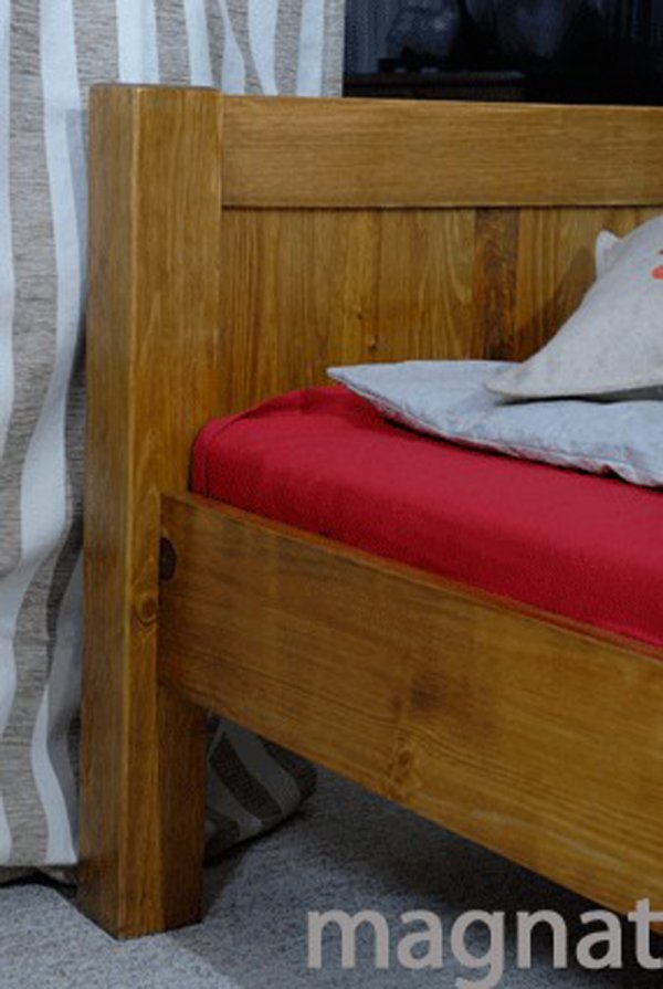Nová postel z masivu borovice o síle 26 mm. Postele jsou lakovány dvakrát bezbarvým ekologicky a zdravotně nezávadným lakem. Lůžka jsou ručně barvená, broušená a znovu lakovaná, pouze tento postup zaručí požadovaný konečný výsledek . Postel vypadá dokonale a zachovává si svou původní strukturu. Postele v barevných provedeních olše, dub a ořech, jsou napřed mořeny ve výše zmíněných odstínech a následně dvakrát lakovány průhledným lakem. Barevná provedení naleznete zvlášť.