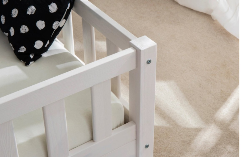 Postel Adele, je vyrobena z masivního a odolného borovicového dřeva a díky svým zaobleným hranám nabízí maximální ochranu. Pro větší bezpečnost má tato postel obvodové ochranné barierky a nastavitelnou kratší barierku se vstupem do postele, kterou lze připevnit variabilně vlevo, vpravo nebo vůbec.