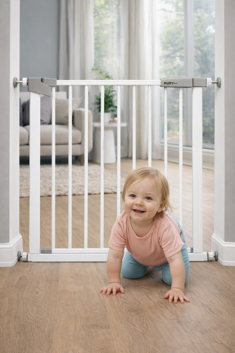Zábrana Pupyhou 63-70 cm - dveře/schody - bílá