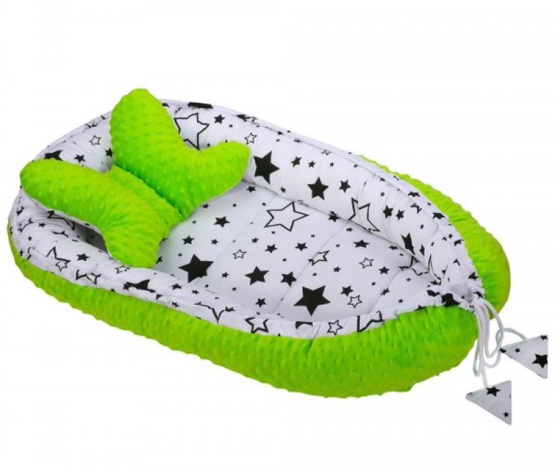 Hnízdečko je praktický pomocník pro první měsíce dětátka, kdy je vhodné ho použít během celého dne, mantinely chrání miminko proti pádu.