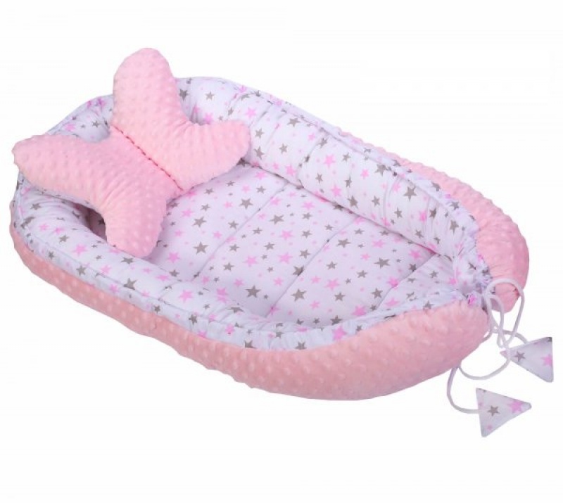 Hnízdečko je praktický pomocník pro první měsíce dětátka, kdy je vhodné ho použít během celého dne, mantinely chrání miminko proti pádu.