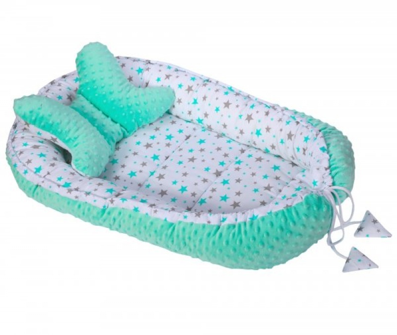 Hnízdečko je praktický pomocník pro první měsíce dětátka, kdy je vhodné ho použít během celého dne, mantinely chrání miminko proti pádu.