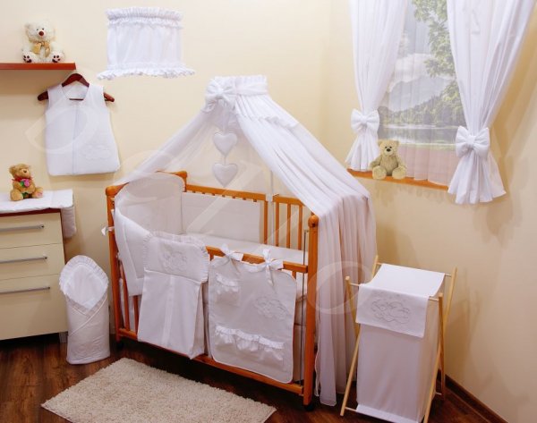 Tato nová luxusní vyšívaná sada do postýlky je vyrobena ze 100% bavlny té nejvyšší kvality. Všechny materiály vlastní certifikát OKOTEX standard 100. Zipy jsou vybaveny bezpečnostním jezdcem. Výplně této sady jsou vyrobeny z vysokojakostních silikonových vláken, která jsou antialergická. Jsou proto vhodná právě pro nejmenší děti. Vzdušná látka polštářku je vyrobena z jemných vláken Microtouch a proto zaručuje nejjvyšší komfort spánku pro vaše nejmenší. Přikrývka byla vyvinuta ve spolupráci s dermatology pro kojence a malé děti s citlivou pokožkou se sklonem k alergiím. Je vyrobena z vysoce kvalitních silikonových vláken. Prodyšná mikrovlákna tkaniny Microtouch zaručují měkkost i nejcitlivější a nejnáročnější pleti. Moskytiera je vyrobena z šifonu, zajišťuje ochranu před hmyzem. Ložní prádlo lze prát v pračce na 60 °C a sušit v sušičce.