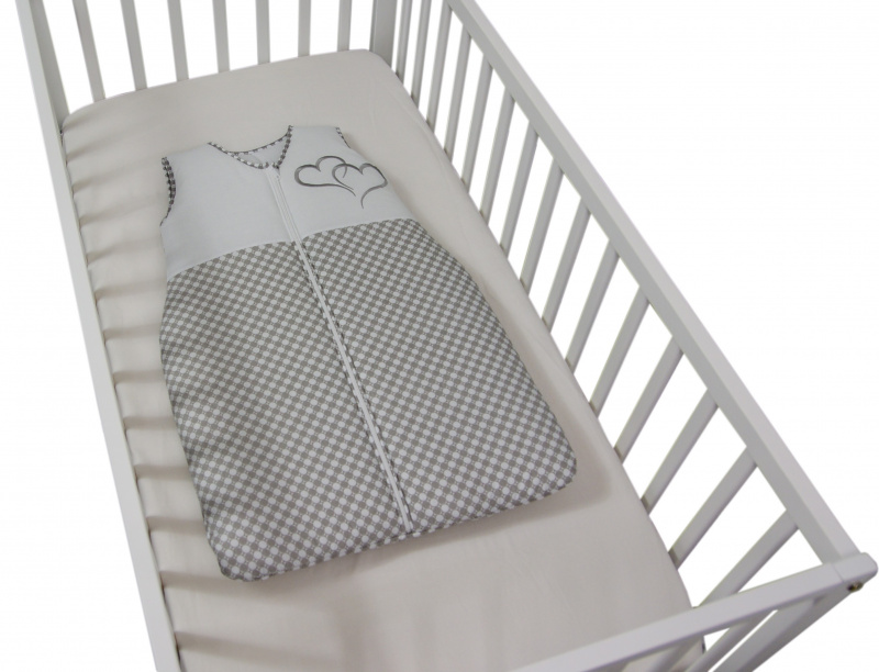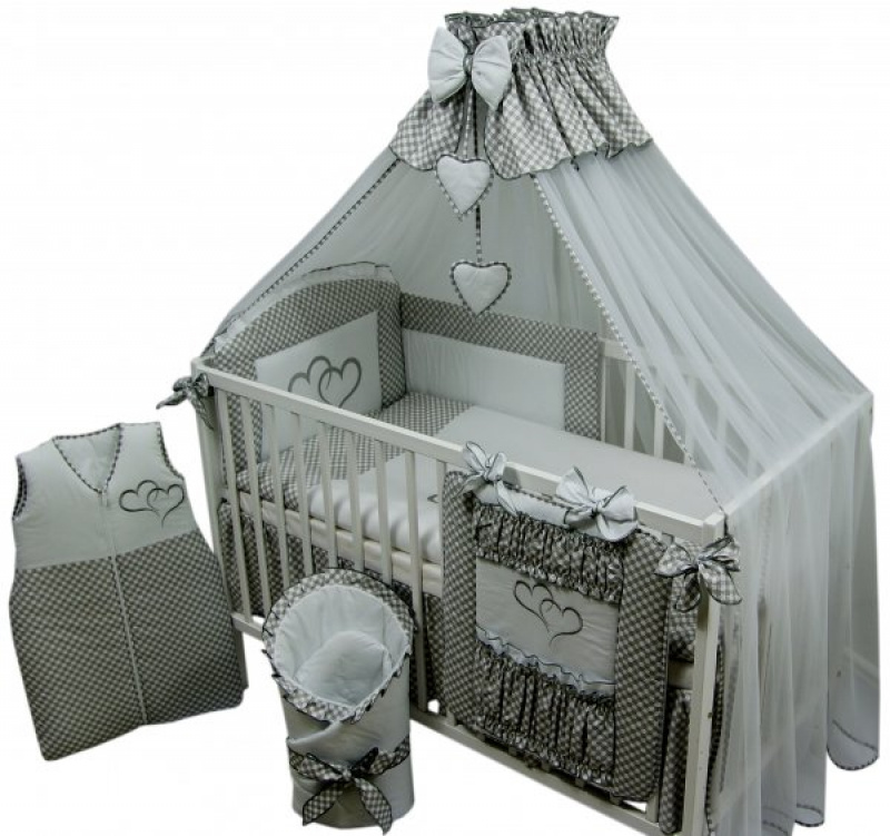 Postýlka + 16-ti dílná luxusní vyšívaná sada dvě srdíčka -šedá