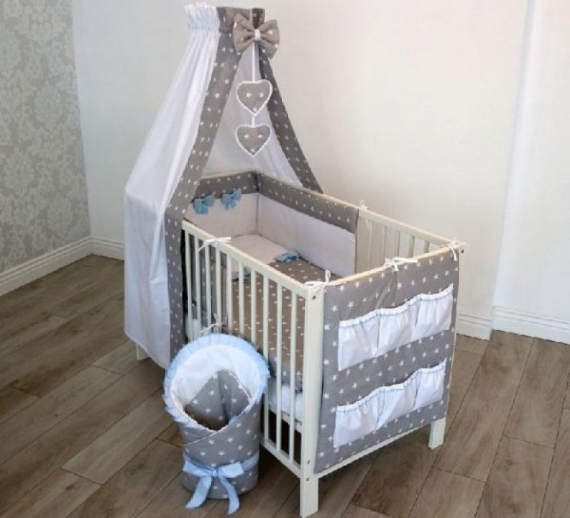Tato nová a praktická sada do postýlky obsahuje 14 nezbytných dílů včetně borovicové postýlky z masivu, je vyrobena ze 100% bavlny té nejvyšší kvality. Všechny materiály vlastní certifikát OKOTEX standard 100. Zipy jsou vybaveny bezpečnostním jezdcem. Výplně této sady jsou vyrobeny z vysokojakostních silikonových vláken, která jsou antialergická. Jsou proto vhodná právě pro nejmenší děti. Vzdušná látka polštářku je vyrobena z jemných vláken Microtouch a proto zaručuje nejjvyšší komfort spánku pro vaše nejmenší. Přikrývka byla vyvinuta ve spolupráci s dermatology pro kojence a malé děti s citlivou pokožkou se sklonem k alergiím. Je vyrobena z vysoce kvalitních silikonových vláken. Prodyšná mikrovlákna tkaniny Microtouch zaručují měkkost i nejcitlivější a nejnáročnější pleti.
