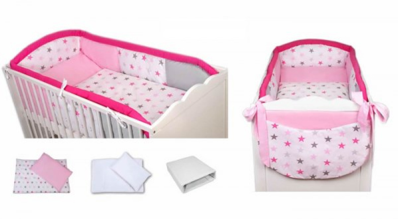 Tato nová a praktická, komfortní sada do postýlky obsahuje postýlku + 9 nezbytných dílů. Je vyrobena ze 100% bavlny té nejvyšší kvality. Všechny materiály vlastní certifikát OKOTEX standard 100. Zipy jsou vybaveny bezpečnostním jezdcem. Výplně této sady jsou vyrobeny z vysokojakostních silikonových vláken, která jsou antialergická. Jsou proto vhodná právě pro nejmenší děti. Vzdušná látka polštářku je vyrobena z jemných vláken Microtouch a proto zaručuje nejvyšší komfort spánku pro vaše nejmenší. Přikrývka byla vyvinuta ve spolupráci s dermatology pro kojence a malé děti s citlivou pokožkou se sklonem k alergiím. Je vyrobena z vysoce kvalitních silikonových vláken. Prodyšná mikrovlákna tkaniny Microtouch zaručují měkkost i nejcitlivější a nejnáročnější pleti. Ložní prádlo lze prát v pračce na 30 ° C a nesušit v sušičce.