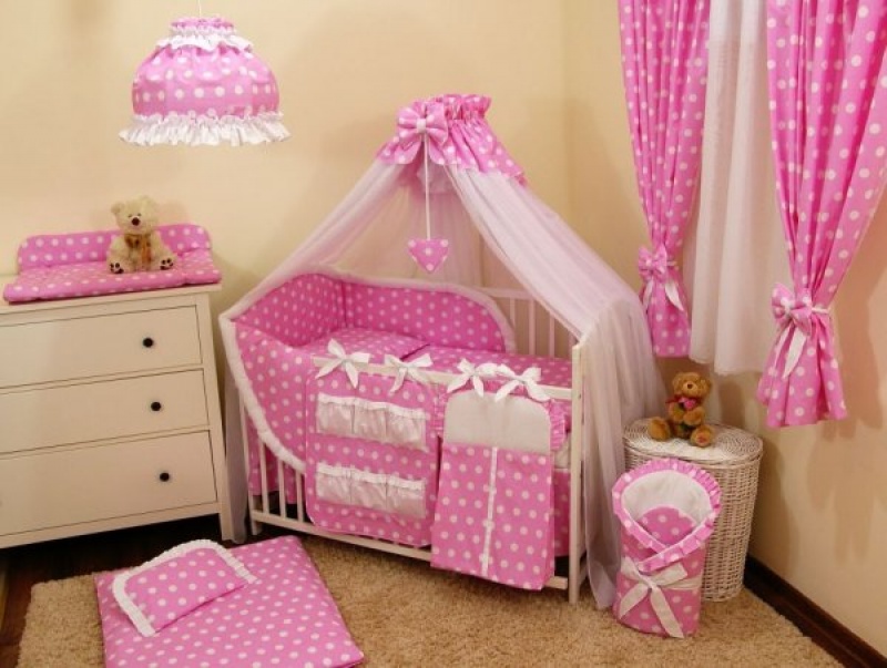 Souprava do postýlky 12 dílů - model růžový puntík